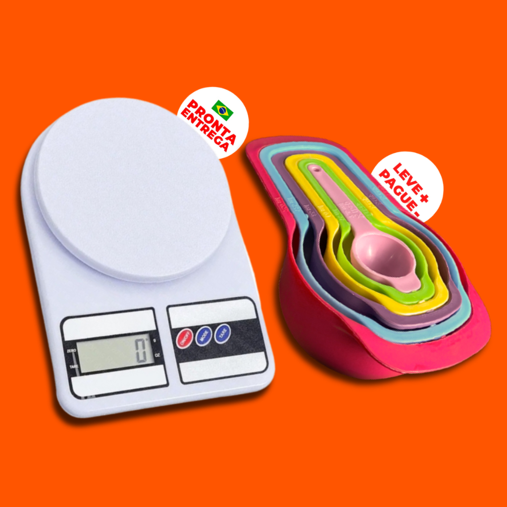 Balança Digital De Precisão Cozinha 10kg Nutrição E Dieta + Conjunto Kit Medidor 6 Peças Colheres Xícaras