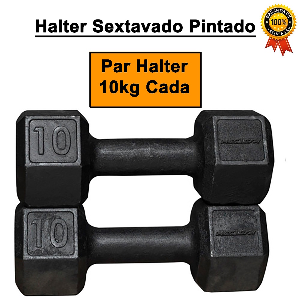 Par Halter Dumbell Sextavado Pintado 10Kg Treino Academia Cross Training