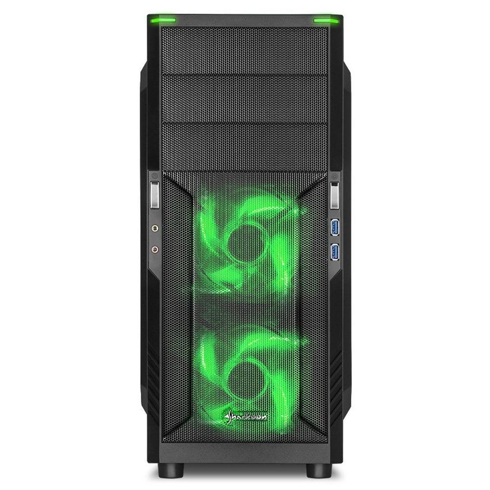 Gabinete Gamer Sharkoon VG6-W Green ATX sem Fonte, USB 3.0, 3 Fans LED, Preto com Lateral em Acrílico