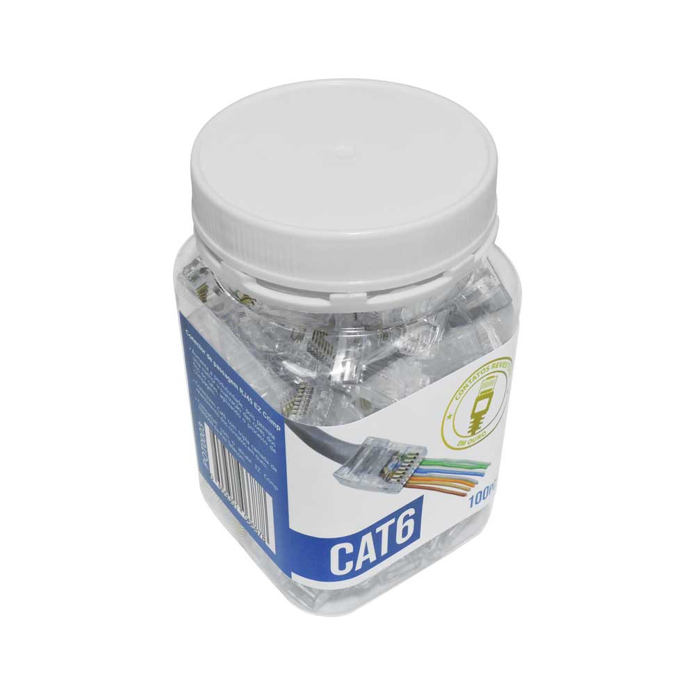 Conector RJ45 Cat6 Para Cabos de Rede EZ Crimp Plug de Passagem - Pote com 100 unidades