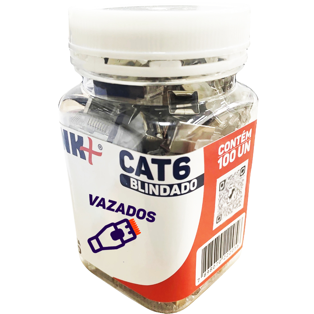 Pote Com 100 Peças Conector Plug Rj45 Vazado Cat6 Blindado LINK+