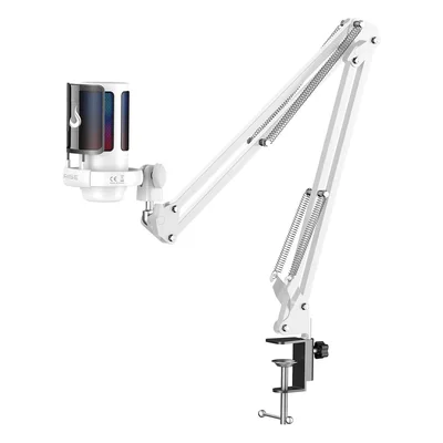 Microfone Gamer Rise Mode Elite 08 com Suporte de Mesa, RGB, USB-C, Branco - RM-ME-08-W