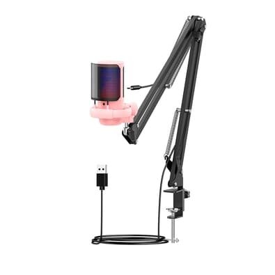 Microfone Gamer De Mesa Rise Mode Elite 08, RGB, USB-C, Rosa - RM-ME-08-PK