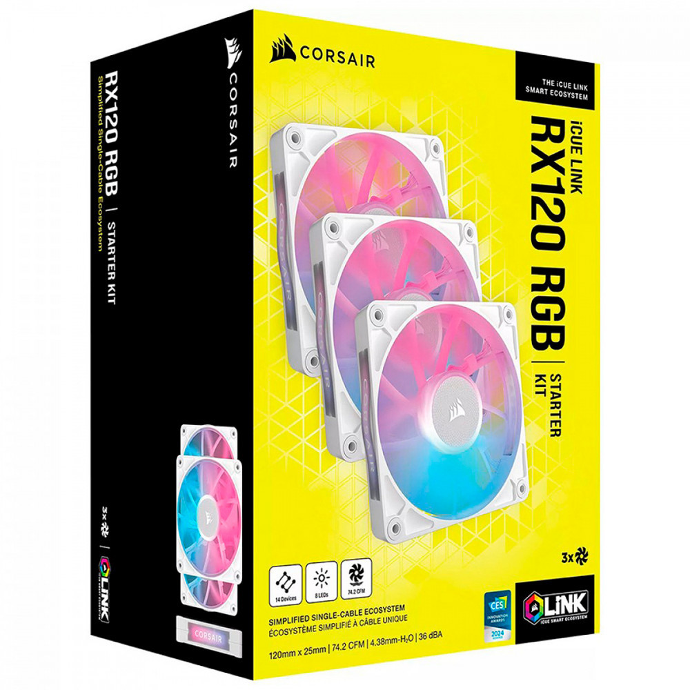 Kit com 3 Ventoinhas Corsair iCUE LINK RX120 RGB White, 120mm, Branco - CO-9051022-WW