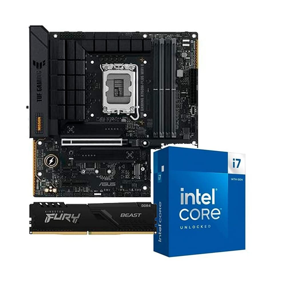Kit Processador Intel Core i7-14700KF + Placa-Mãe ASUS TUF GAMING B760M-PLUS WIFI II + Memória RAM Kingston Fury Beast, 8GB DDR4