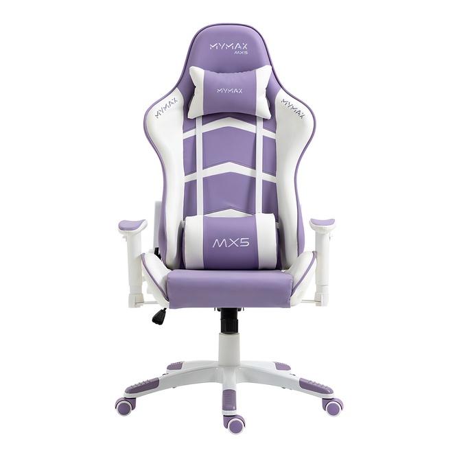 Cadeira Gamer Mymax MX5, Até 150Kg, com Ajuste de altura, Giratória, Branco e Roxo - MGCH-MX5/PRWH