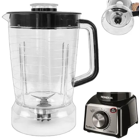 Copo Para Liquidificador Mondial Com Tampa E Alça Preto Muito Resistente Cristal L-1000W E L-1200W