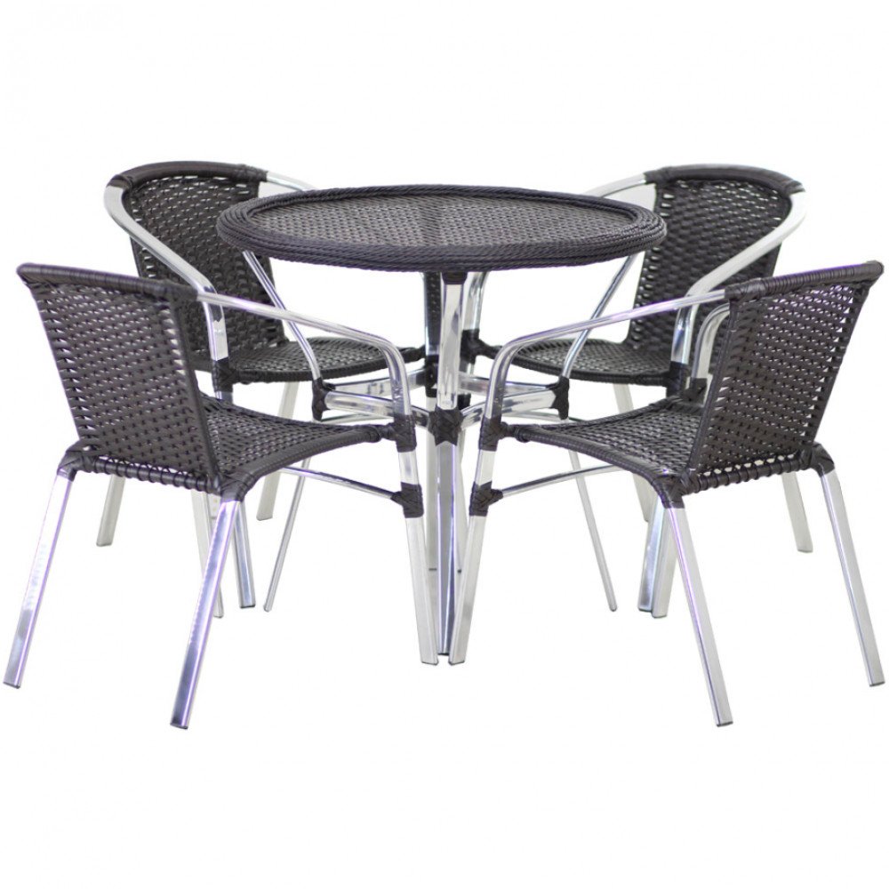 Kit 4 Cadeiras Floripa e Mesa Tampo Tramado Alumínio Piscina Jardim Área