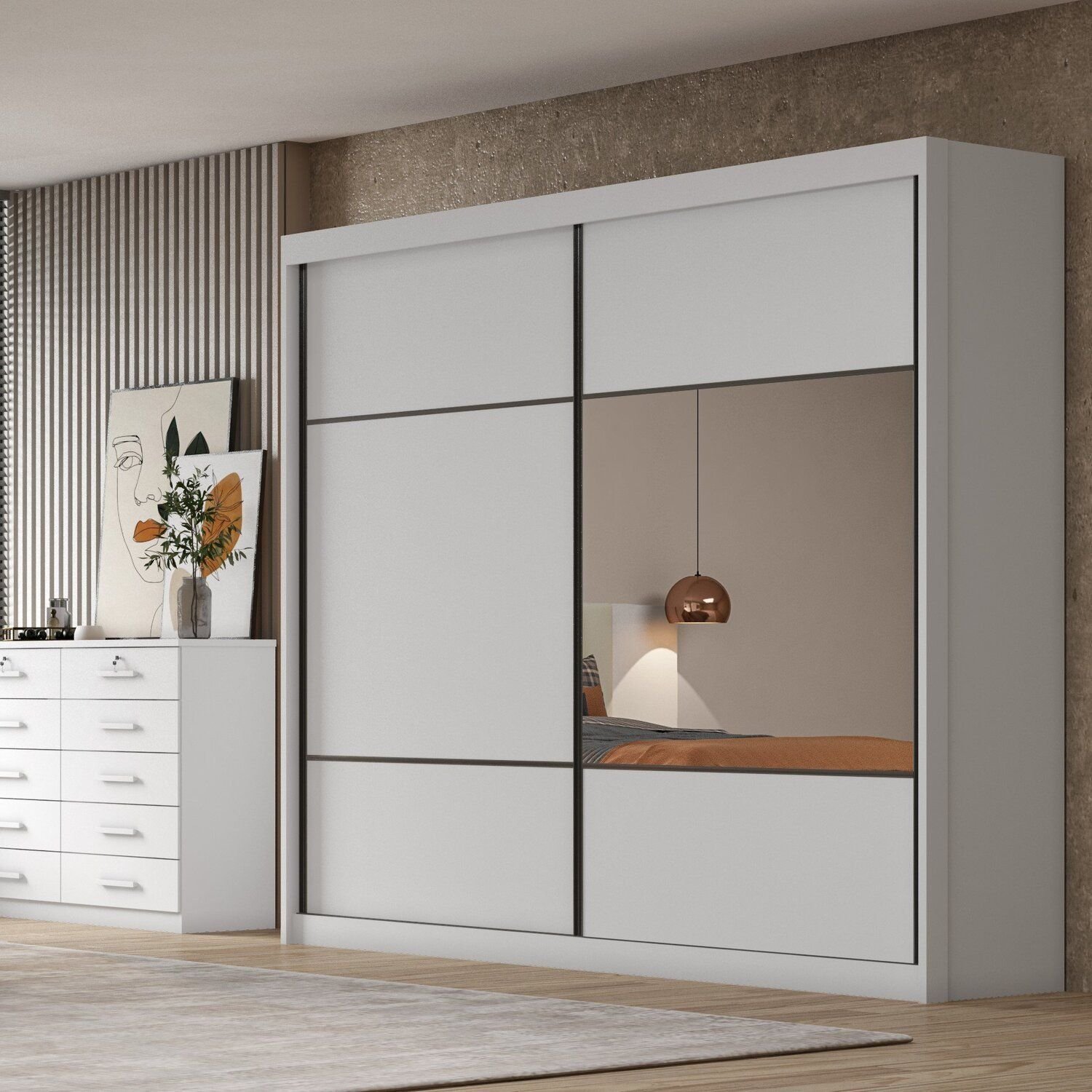 Guarda Roupa Casal 2 Portas com Espelho 6 Gavetas 100% MDF California Branco - Branco
