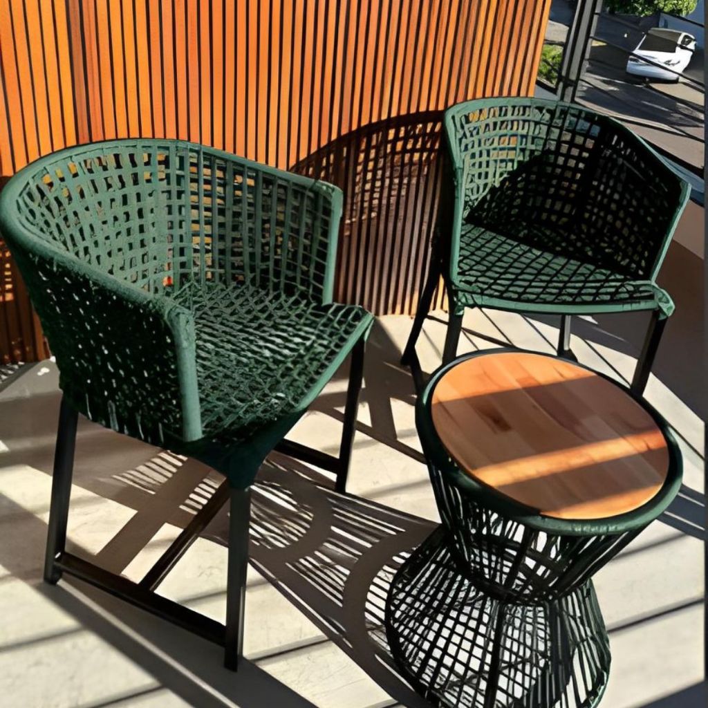 Kit Mesa Wine E 4 Cadeiras Área Externa Espaço Gourmet Corda Náutica Bethari D04 Verde - Lyam Decor