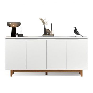 Aparador Buffet Flow 4 Portas Pés Pinus Madeira Maciça Balcão Prateleira Interna Organizador Sala Cozinha Branco - Lojas RPM