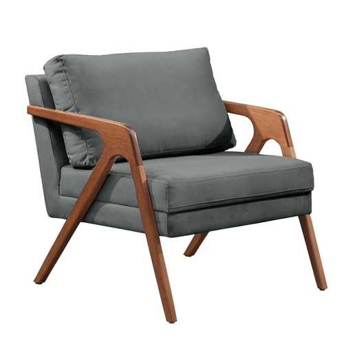 Poltrona Estofada Decorativa Pérola 76 x 72 Cm Madeira Maciça Imbuia Linho Cinza L55