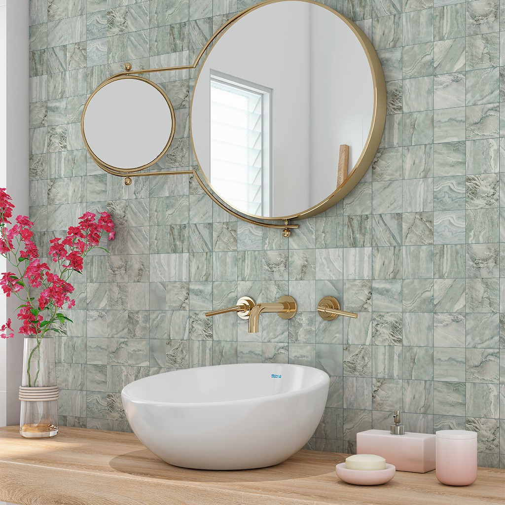 Papel De Parede Adesivo Lavável Para Cozinha Banheiro Box Pastilha Marmorizada Verde