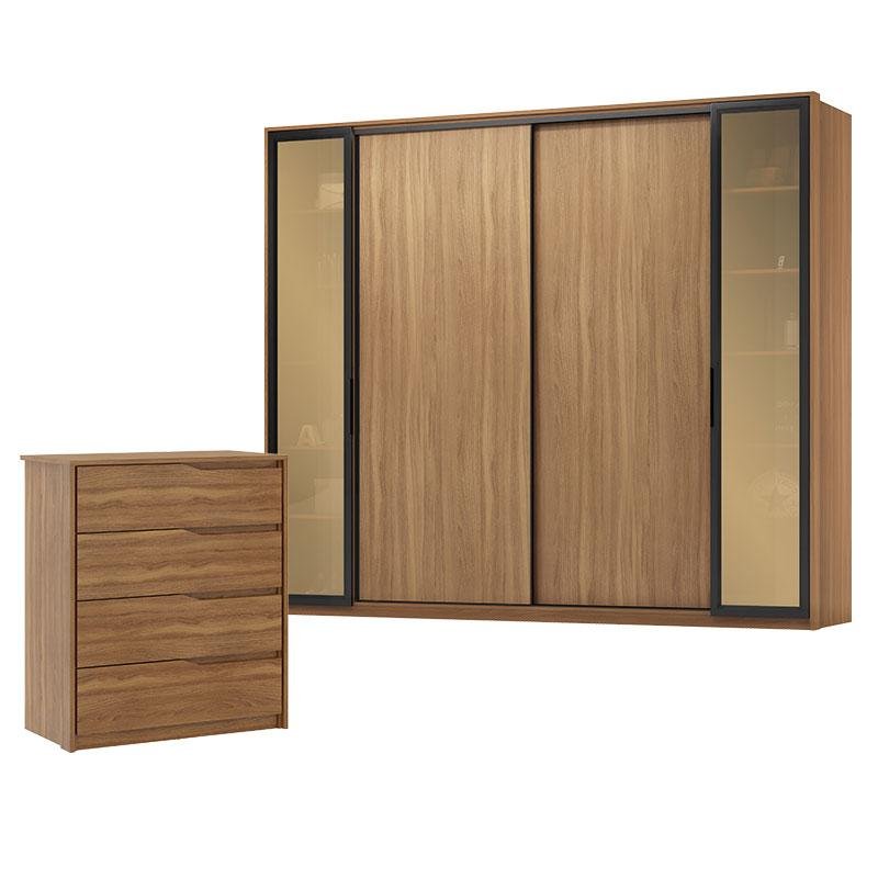 Cômoda Átria e Guarda Roupa Casal Laredo Amêndola Touch Nude Prime Flex com Portas de Vidro Reflecta