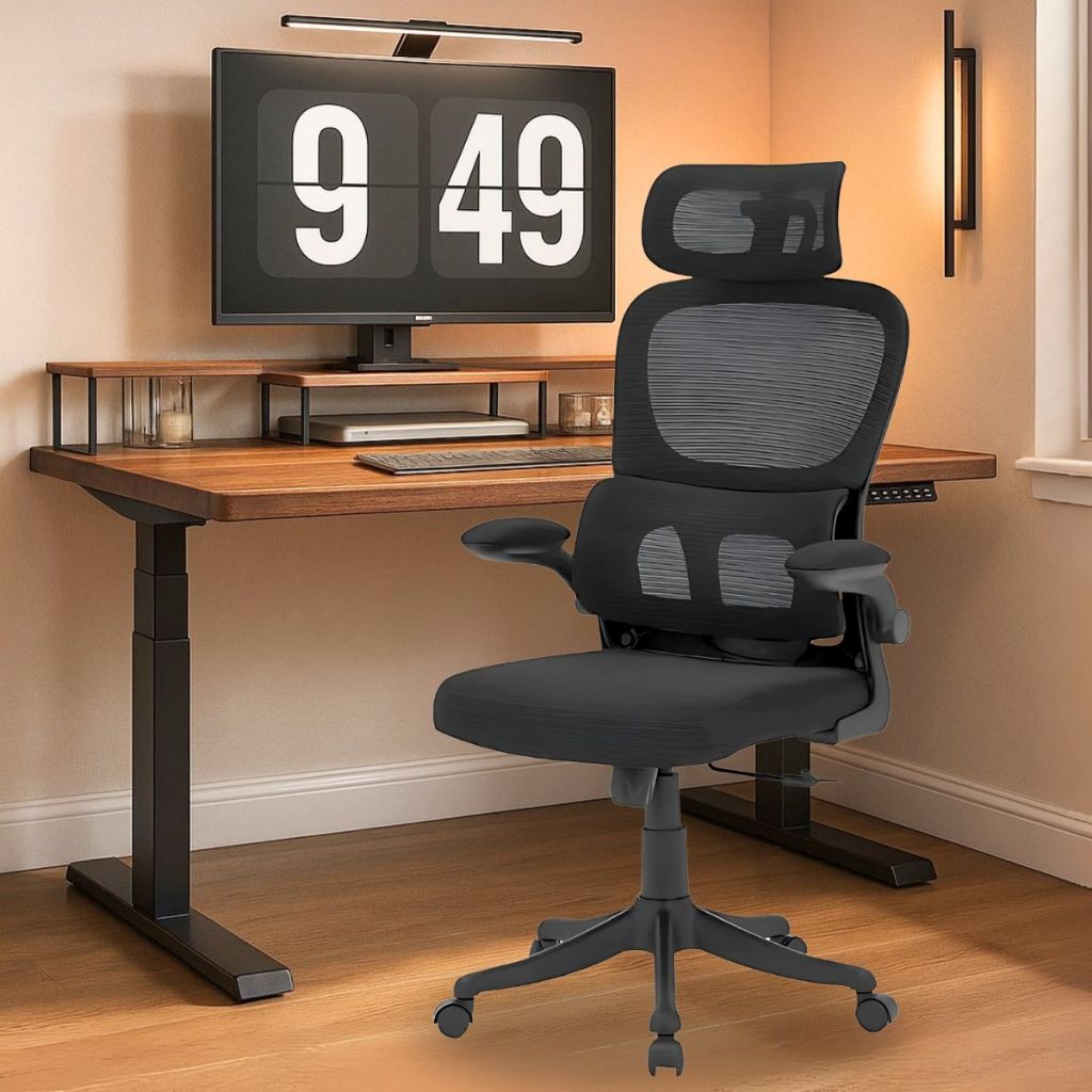 Cadeira de escritório, design ergonômico com suporte lombar independente, malha respirável e encosto de cabeça ajustável(Preto)