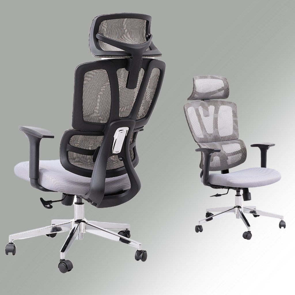 Cadeira de escritório, design ergonômico com suporte lombar independente, malha respirável e encosto de cabeça ajustável(Cinza)