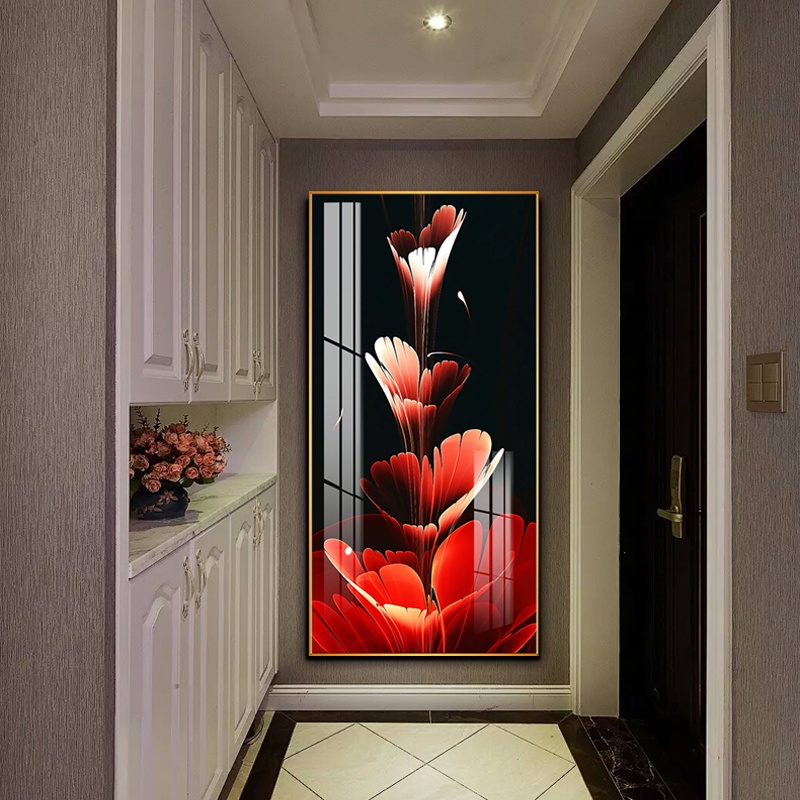 Quadro Preto vermelho flor folha abstrato nórdico arte planta pintura luxuoso moderno retrato da parede para a decoração da sala de estar