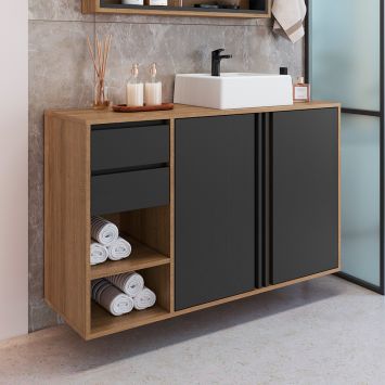 Gabinete Suspenso com Cuba Antônia 2 Portas 2 Gavetas Mel e Grafite