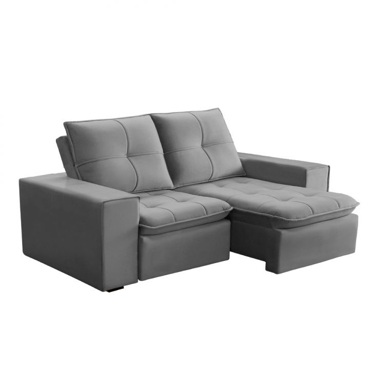 Sofá 4 Lugares Retrátil e Reclinável com Chaise Esquerdo Noruega Veludo Prata