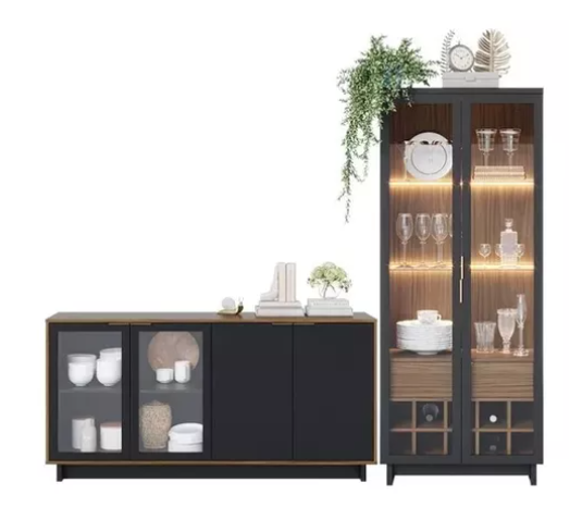 Cristaleira Guanabara e Buffet Vitória Preto Fosco/noce Milano