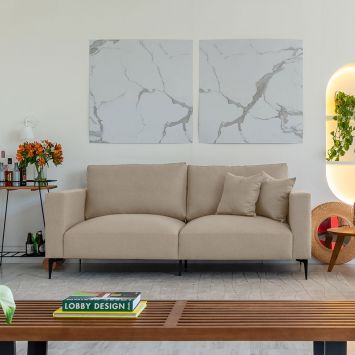 Sofá Unne 3 Lugares com Molas Ensacadas Linho Bege 200 cm
