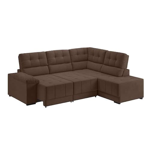 Sofá de Canto 3 Lugares Retrátil e Reclinável Firenze Suede Marrom