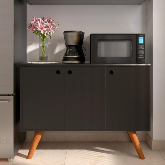 Balcão Buffet Multiuso Moderno Com 3 e 2 Portas Branco ou Preto
