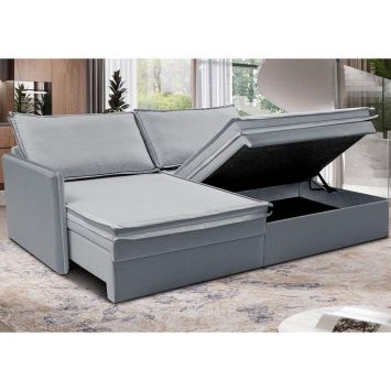 Sofá Sem Caixa Retrátil Baú 1,95m Lounge Linho Cinza Claro Cama inBox