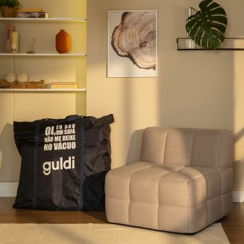 Sofá Guldi Popup com Módulo Canto Central e Puff Linho Bege