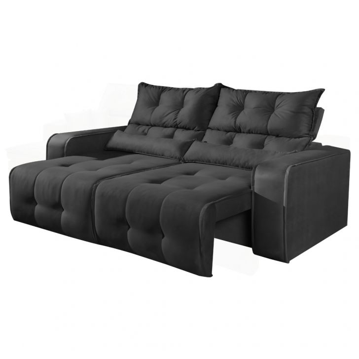 Sofá 3 Lugares Retrátil e Reclinável Cama inBox Slim 2,00m Velusoft Preto