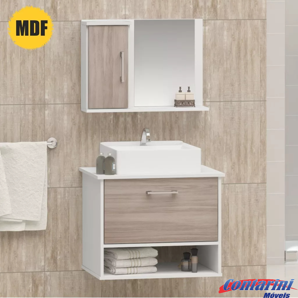 Gabinete Armário Para Banheiro 60 cm Com Espelho E Cuba Branco Naturalle Brun II Shop JM