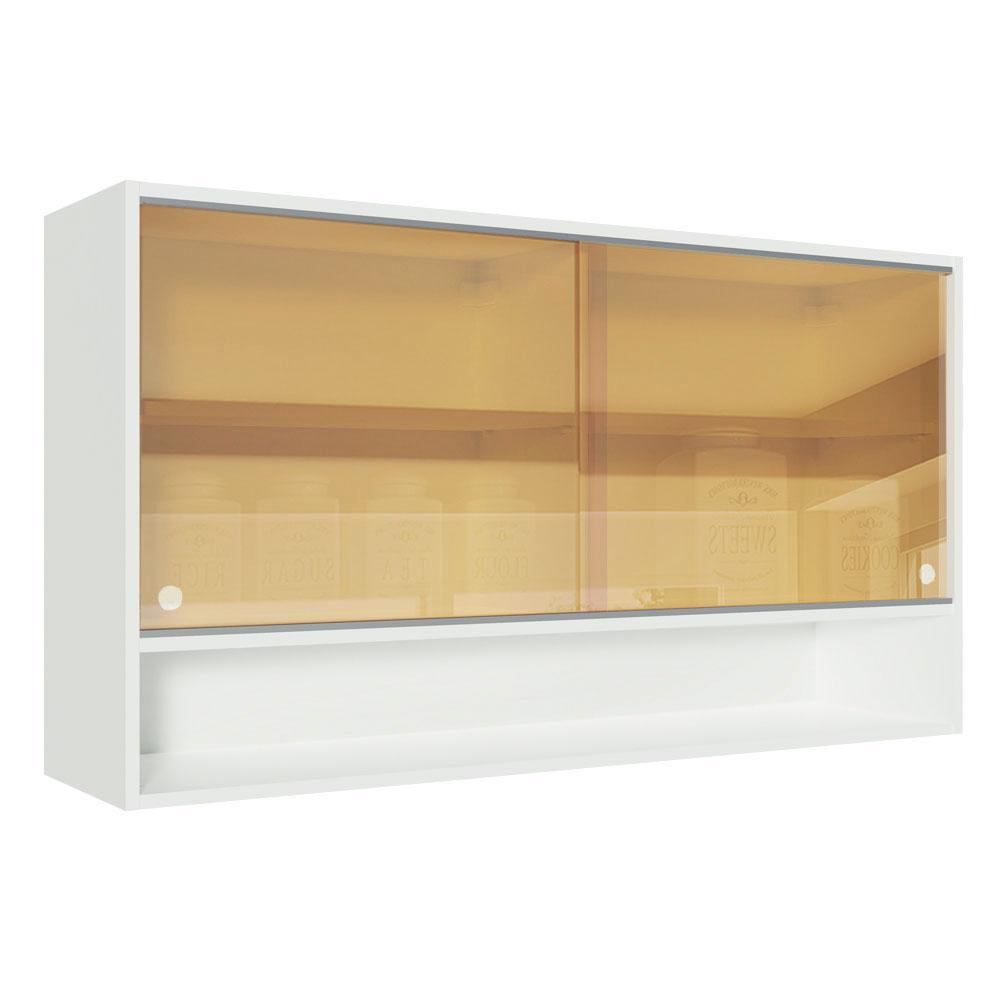 Armário Aéreo Madesa Glamy 2 Portas de Correr de Vidro e 1 Nicho - Branco