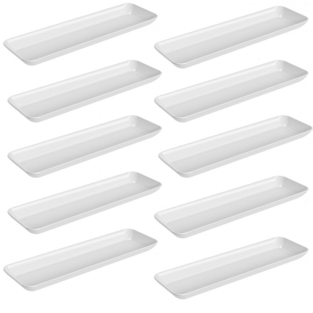 Kit 10 Petisqueiras Retangulares Prato Porta Petisco Grande Branco