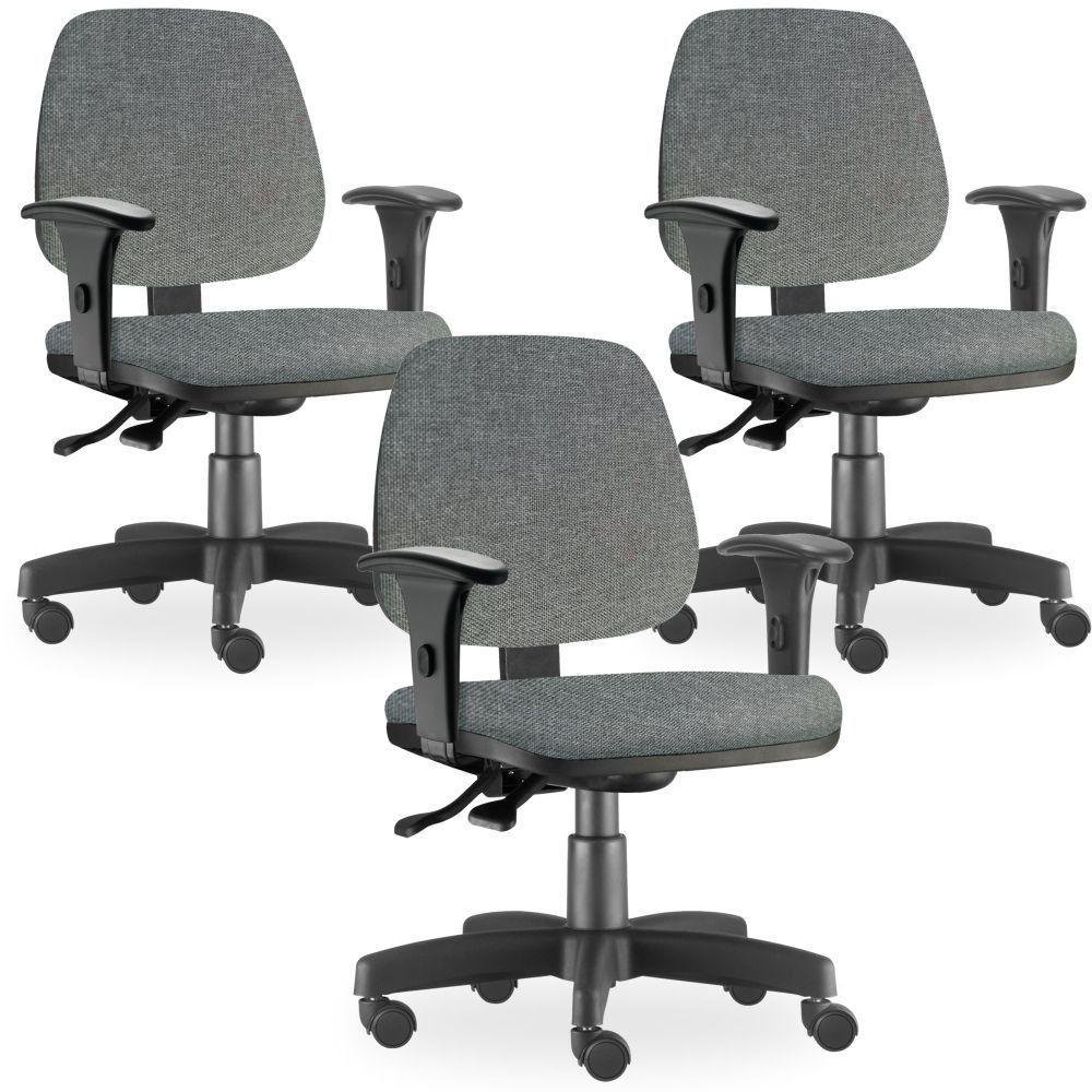 Kit 03 Cadeiras De Escritório Giratória Executiva Ergonômica, Job L02, Linho, Cinza Escuro - Lyam Decor