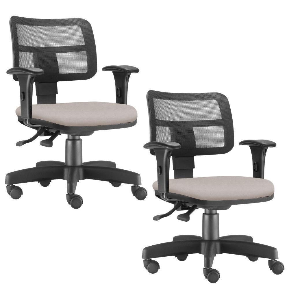 Kit 02 Cadeiras Giratória Zip L02 Executiva Ergonômica Escritório Linho Bege - Lyam Decor