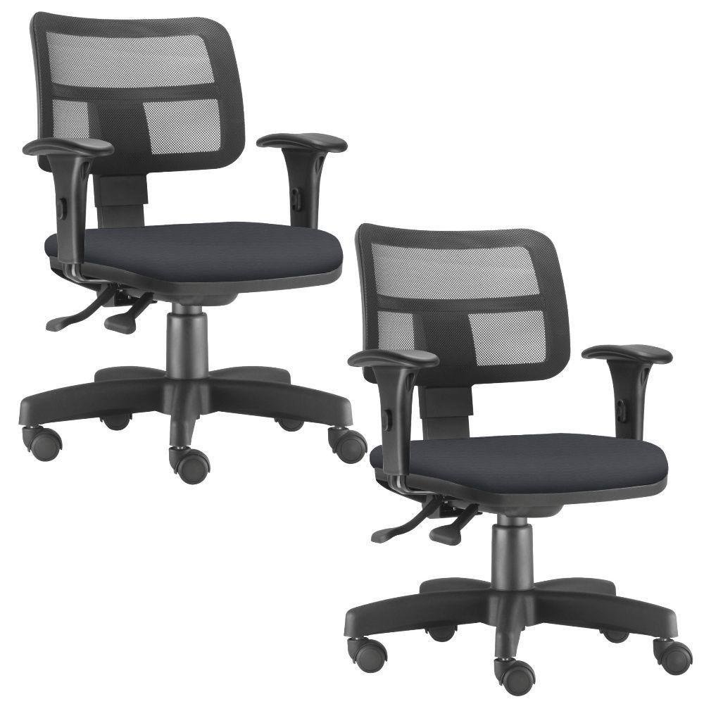 Kit 02 Cadeiras De Escritório Giratória Executiva, Ergonômica Economy M02, Corano Preto - Lyam Decor