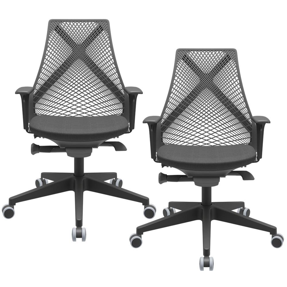 Kit - 02 Cadeiras Escritório Giratórias Zip L02, Executiva Ergonômica, Crepe Cinza - Lyam Decor