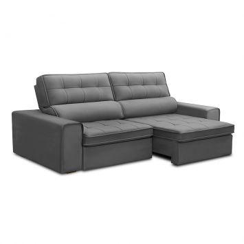 Sofá 3 Lugares Retrátil e Reclinável Atenas Veludo Chumbo