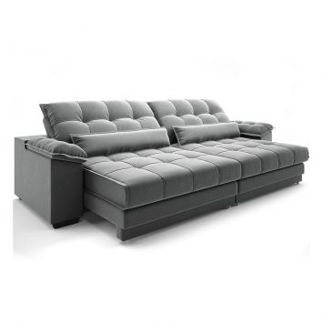 Sofá 4 Lugares Retrátil e Reclinável Flexforma Premier Veludo Cinza 250 cm