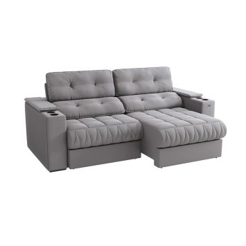 Sofa Cama 4 Lugares Retrátil e Reclinável Paris 2,10m Veludo Cinza