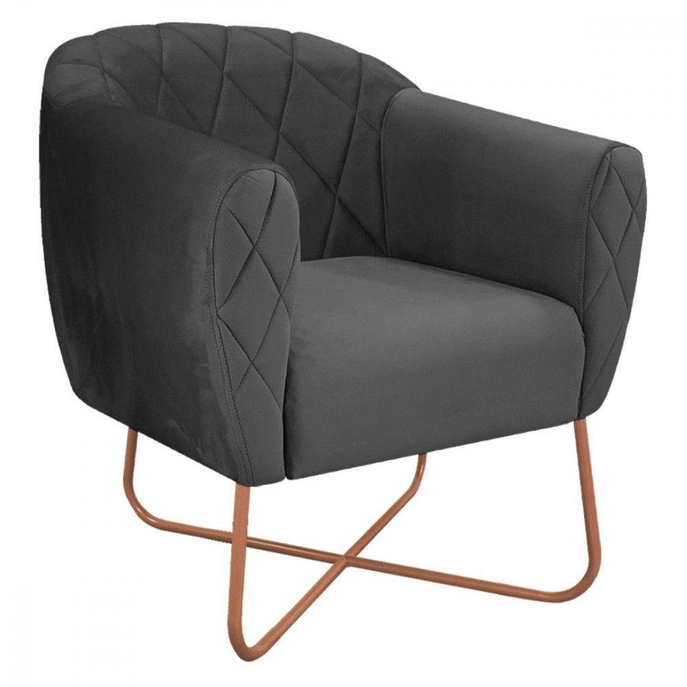 Poltrona Decorativa Opala Cinza Escuro para Sala de Estar Quarto Escritório