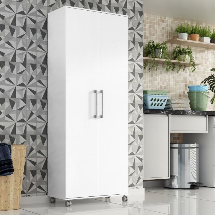 Armario Lavanderia Manuela 2 Pts 1,80m Com Rodinhas Branco