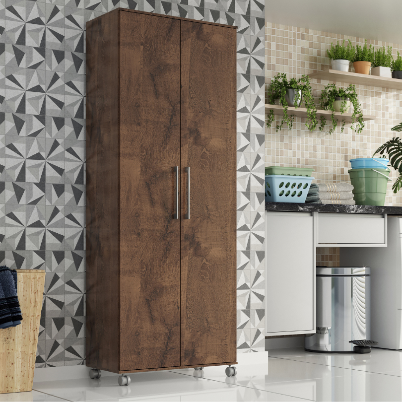 Armario Lavanderia Manuela 2 Pts 1,80m com Rodinhas Chocolate