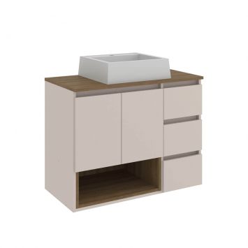 Gabinete de Banheiro Suspenso 80cm Helena com 2 Gavetas e Cuba Mel/Arenas