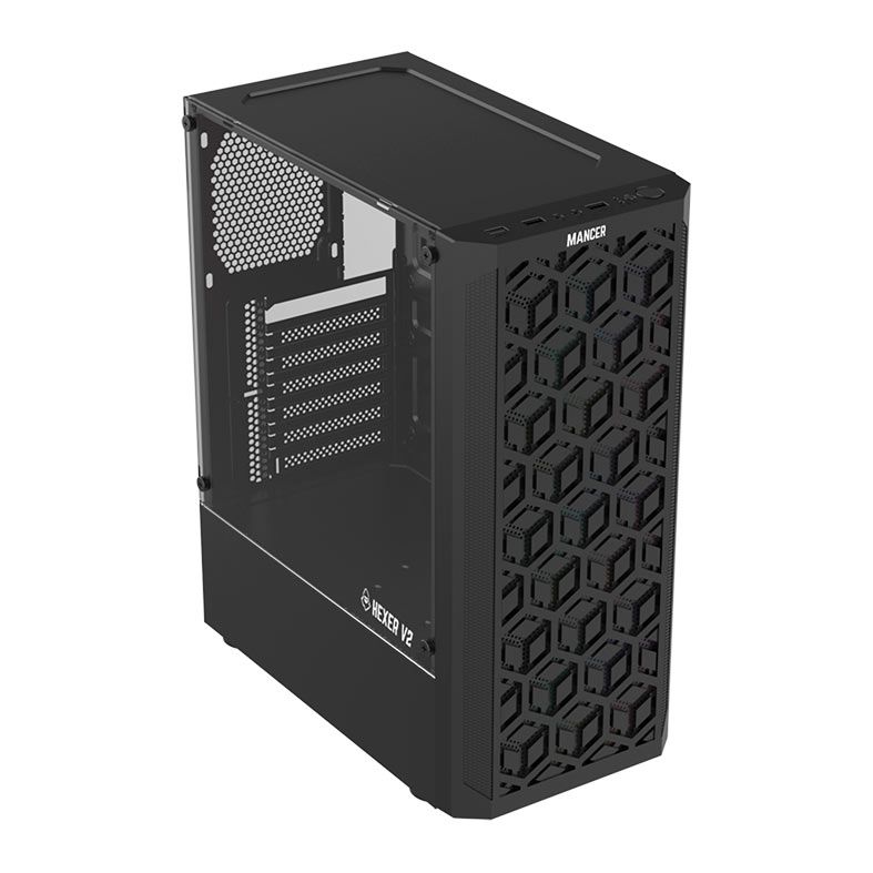 Gabinete Gamer Mancer Hexer 2, Mid-Tower, Lateral de Vidro, Com 3 Fans, Preto, MCR-HX2-BK-3F