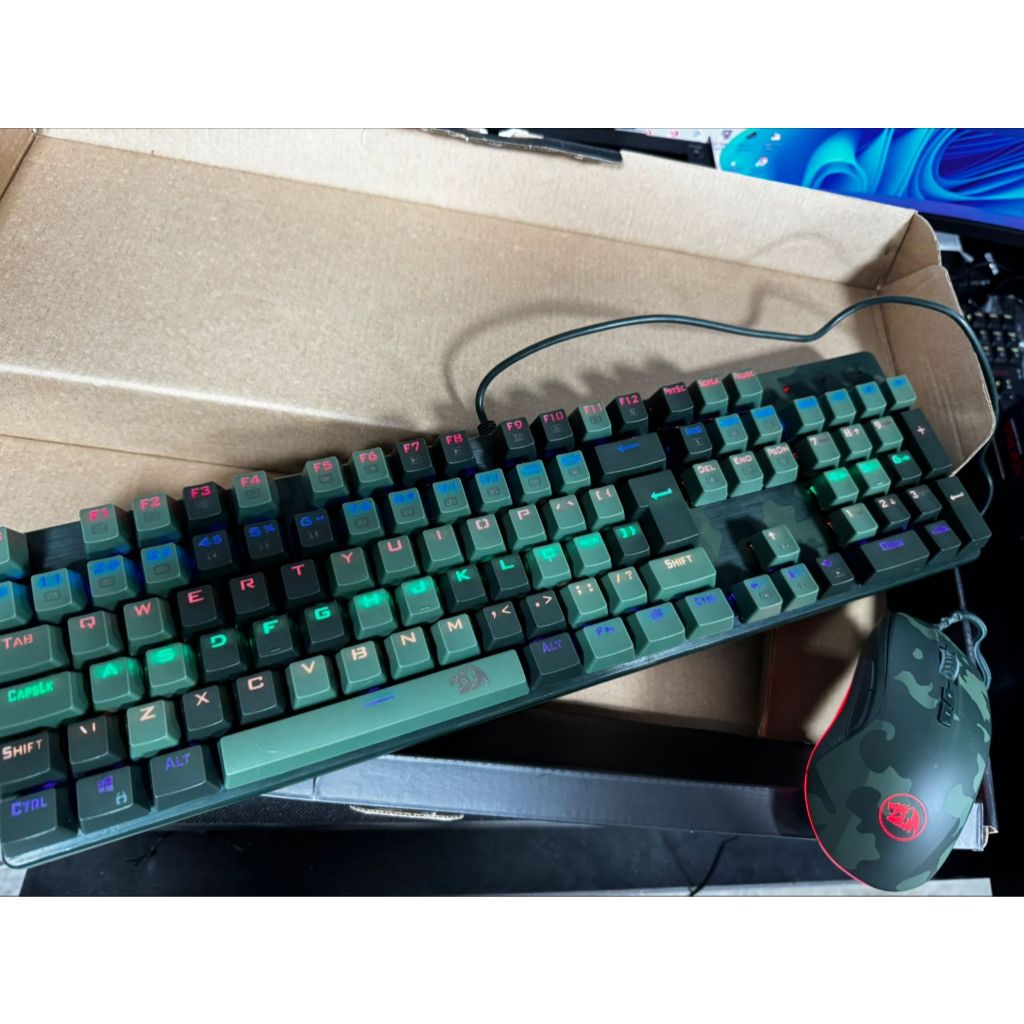 Kit Gamer Redragon Teclado Mecânico Gamer Rainbow ABNT2 Camuflado + Mouse Gamer S108 PT-LIGHT GREEN