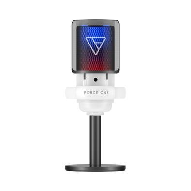 Microfone Gamer Force One Hero, RGB, Botão De Mute, USB, Cardicóide ou Unidirecional, Branco - FR.MC.HE.01