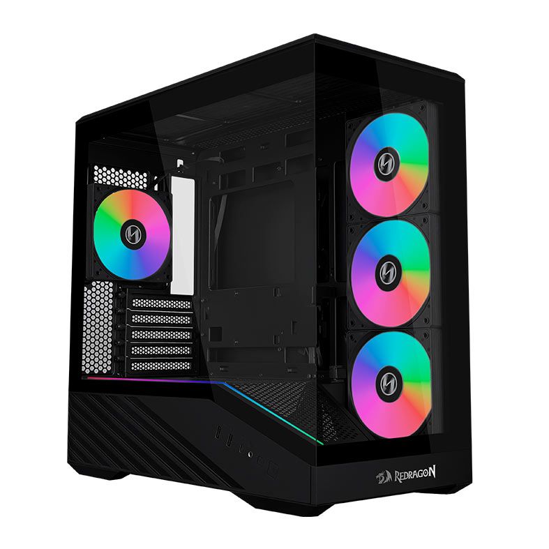 Gabinete Gamer Lian Li Vector V100 Mini X Redragon, ARGB, Mini-Tower, Lateral de Vidro, Com 4 Fans, Preto, OE809RX