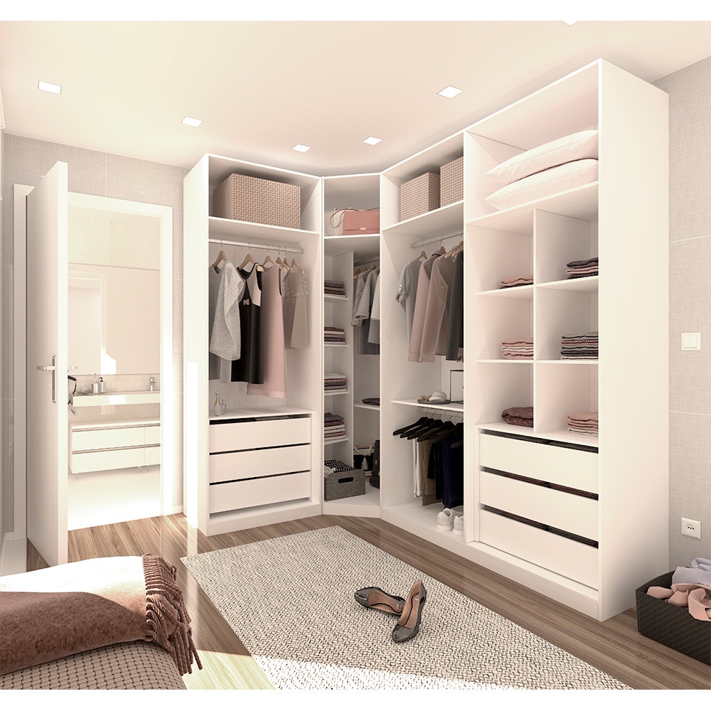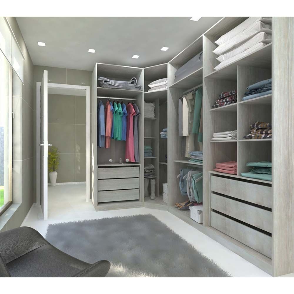 Guarda Roupa de Canto Closet 3 Módulos sem Portas 6 Gavetas e 4 Cabideiros Prime Luciane Móveis