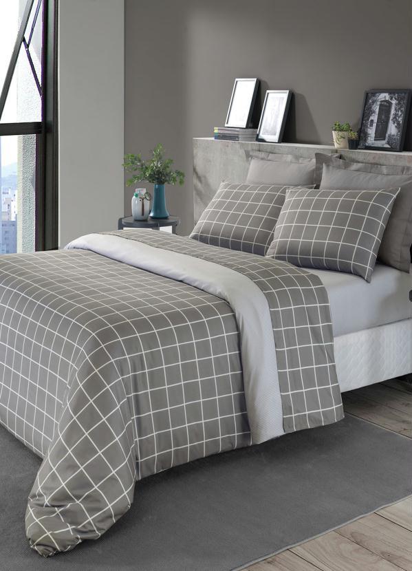 Mundo Lar - Jogo de Cama Xadrez Cinza Casal 4 Peças
